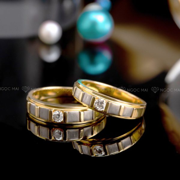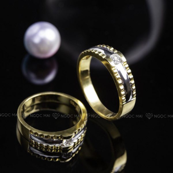 Nhẫn cưới đính kim cương tự nhiên vàng 18K VDG 47695