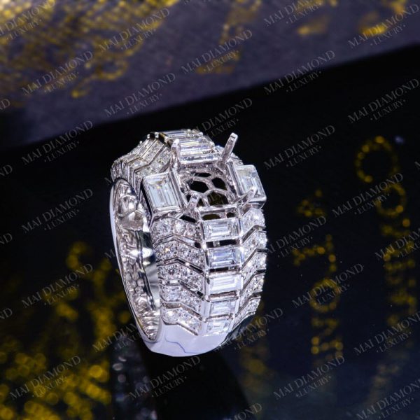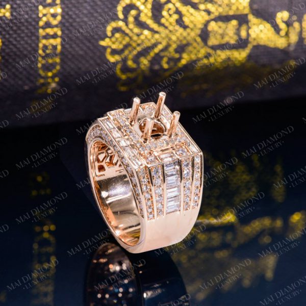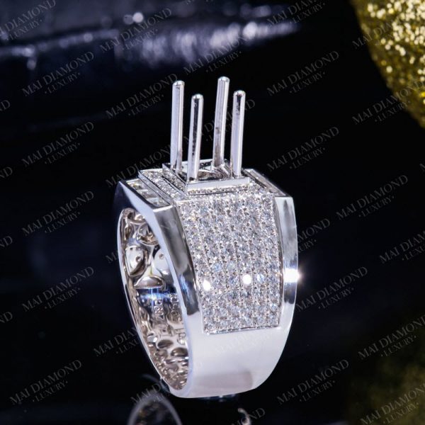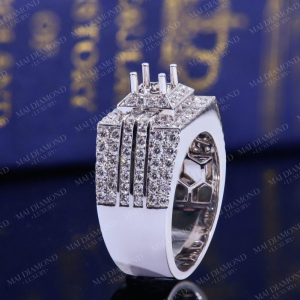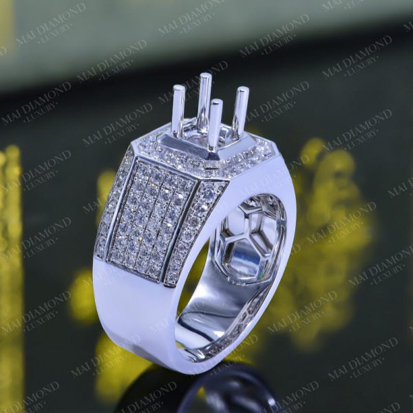 Vỏ nhẫn nam gắn kim cương tấm tự nhiên 14k KC-Ổ nam 006