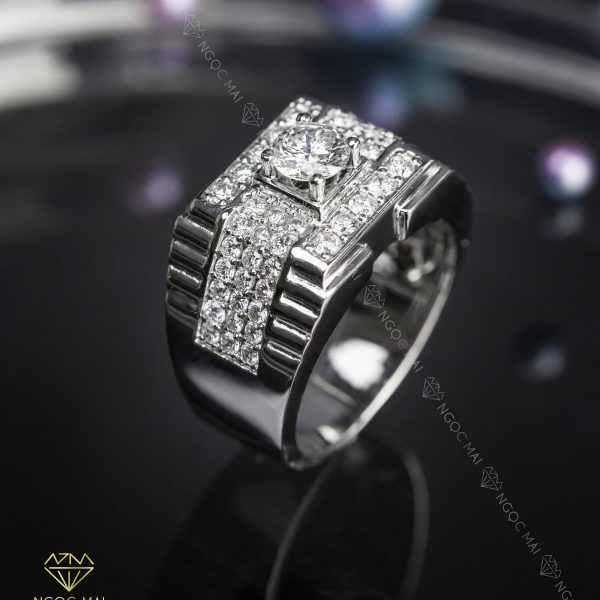 Nhẫn kim cương nam tự nhiên vàng trắng 18K KC – Ổ nam 013