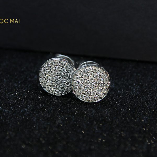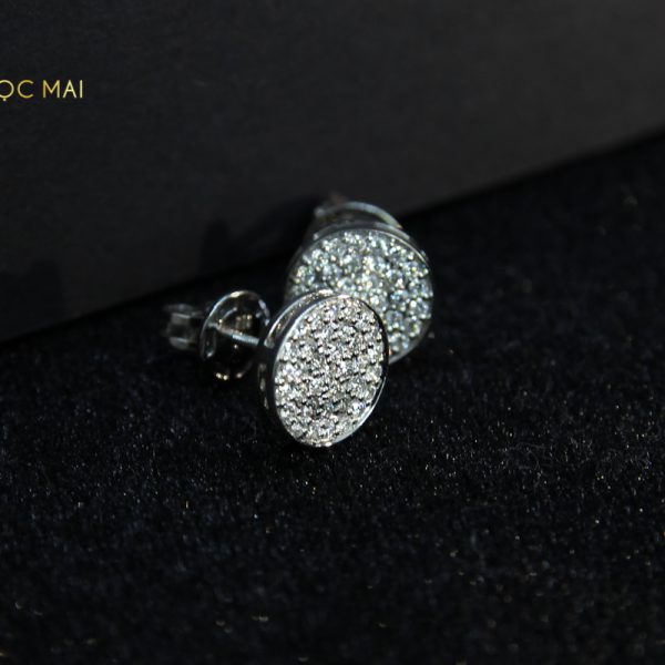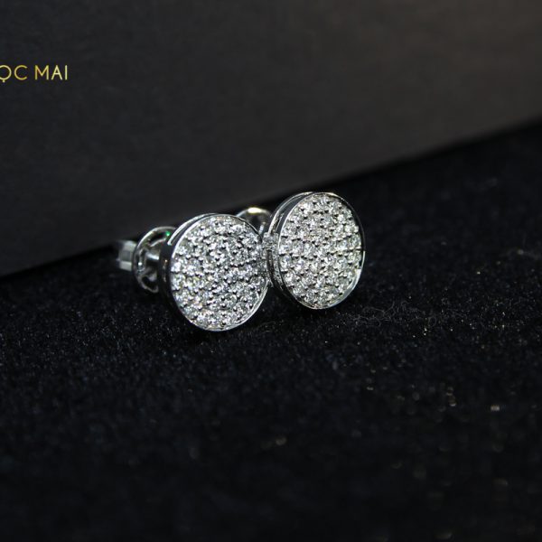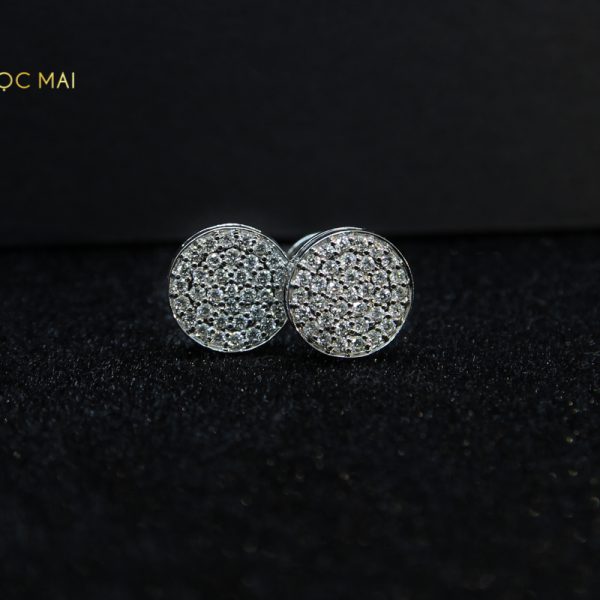 Đôi bông tai KC-BTK 005 được thiết kế có theo kiểu hình tròn khá giản đơn nhưng vẫn vô cùng bắt mắt và nổi bật nhờ 70 viên kim cương tự nhiên được đính trên chất liệu vàng trắng 14K sáng bóng lung linh.