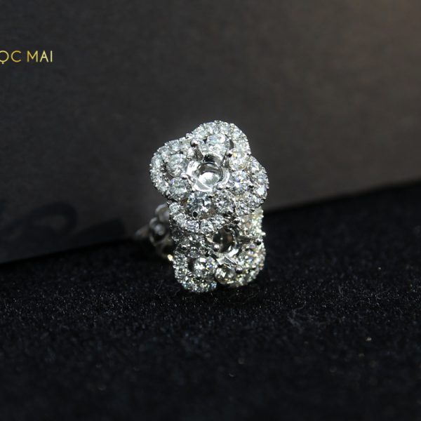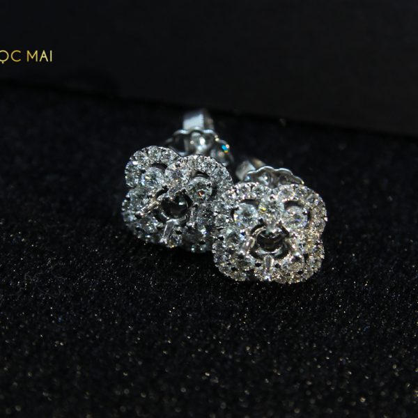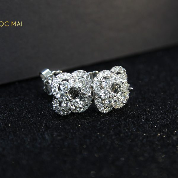 Đây là một mẫu trang sức do đội ngũ thợ kim hoàn chuyên nghiệp của Trang sức Ngọc Mai thiết kế với tạo hình đôi bông tai được lấy cảm hứng từ hình ảnh của một bông hoa 4 cánh đang trong giai đoạn nở rộ cực kỳ rực rỡ. Và nó càng trở nên lung linh hơn khi được đính thêm sắc trắng sáng của các viên kim cương tấm tự nhiên đầy lấp lánh, giúp tăng thêm sự lộng lẫy và mang tới một vẻ đẹp rạng rỡ hơn cho gương mặt của các cô nàng khi trưng diện nó.