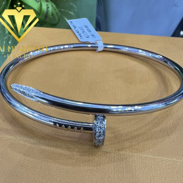 Lắc tay đính kim cương tự nhiên Cartier – Cartier là một thương hiệu trang sức xa xỉ của Pháp và rất nổi tiếng trên toàn thế giới với những bộ sưu tập nữ trang vô cùng độc đáo và mới lạ, nổi bật nhất chính là những món đồ trang sức được lấy cảm hứng từ hình chiếc đinh đầy cá tính và mạnh mẽ.
