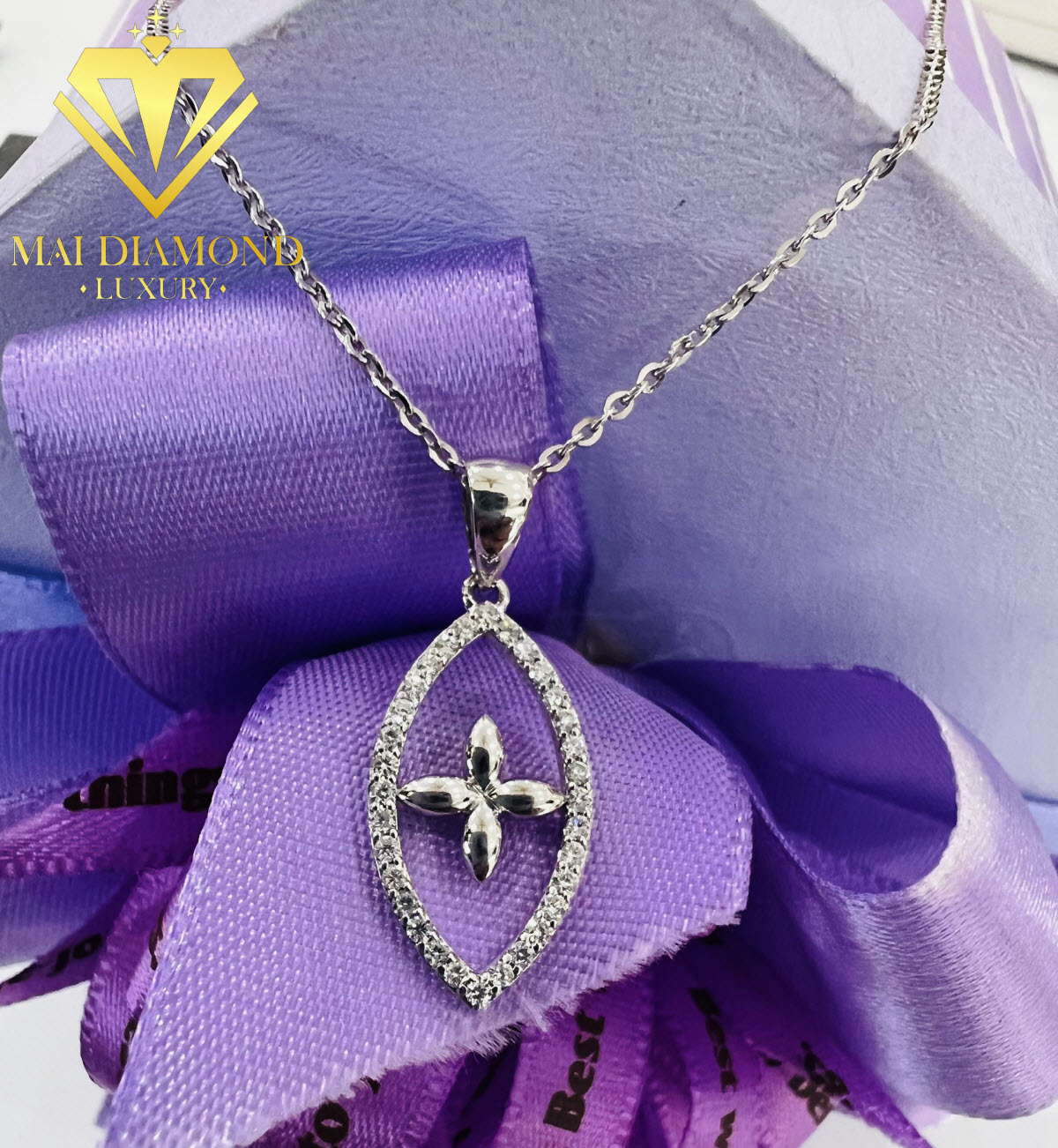 Các nhà chế tác kim hoàn đã tỉ mỉ đính kết những viên kim cương tấm trên toàn bộ phần hình thoi của mặt dây chuyền. Và ở giữa hình thoi ấy chính là một bông hoa 4 cánh được làm nên từ vàng 14K sáng bóng rực rỡ, khiến cho tổng thể mặt dây ẩn chứa một vẻ đẹp quý phái, thời thượng mà bất cứ ai khi nhìn thấy cũng muốn được sở hữu.