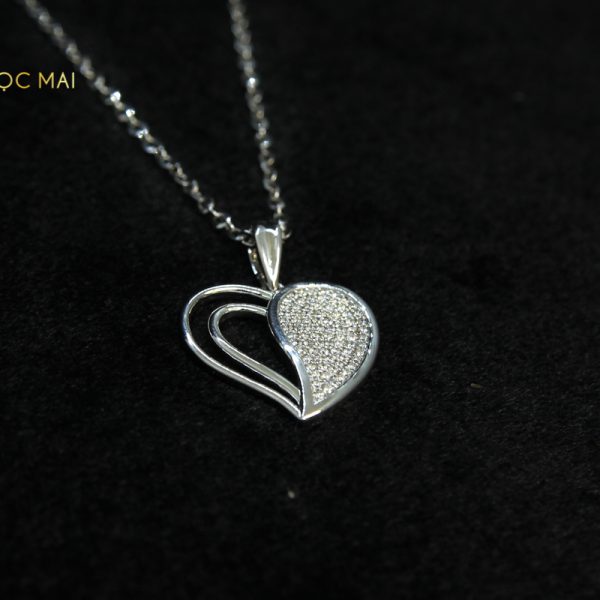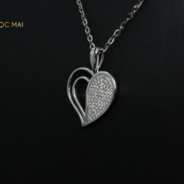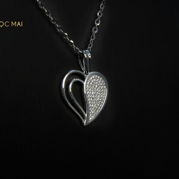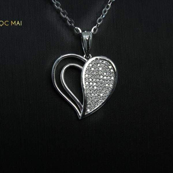 Mặt dây chuyền KC-0038 được tạo hình trái tim – vốn là biểu tượng cho tình yêu vĩnh cửu, đầy sự ngọt ngào và lãng mạn, với màu sắc sáng trắng đầy lấp lánh vì được chế tác từ loại vàng trắng 14K. Bên cạnh đó một nửa của trái tim còn được nạm kim cương tấm tự nhiên vô cùng lộng lẫy với từng viên kim cương nhỏ được đính kết cầu kỳ và tỉ mỉ, để mang tới một vẻ đẹp hoàn hảo và tỏa sáng nhất cho các nàng khi trưng diện.
