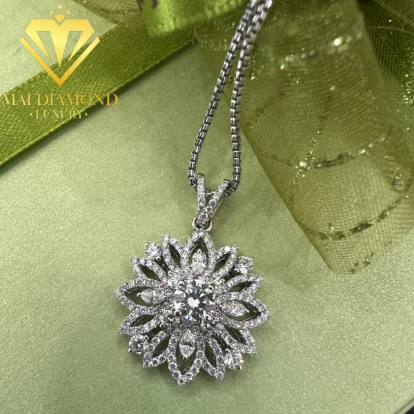 Từng cánh hoa trên mặt dây chuyền đều được các nghệ nhân kim hoàn chạm khắc đầy tinh tế và tỉ mỉ, và đính trên đó là hàng trăm viên kim cương rực rỡ, khiến cho nó càng trở nên cuốn hút và kiêu sa khi được các cô gái đeo trên cổ.