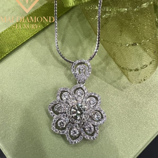 Mang thiết kế tinh tế với hàng trăm viên kim cương tự nhiên cùng một viên chủ đầy lấp lánh và rực rỡ, mẫu mặt dây chuyền nữ gắn kim cương tự nhiên KC-MDN 001 của Mai Diamond Luxury đã nhanh chóng chiếm được cảm tình của các chị em và khiến cho mọi cô gái phải mê đắm bởi vẻ đẹp sang trọng, quý phái này.