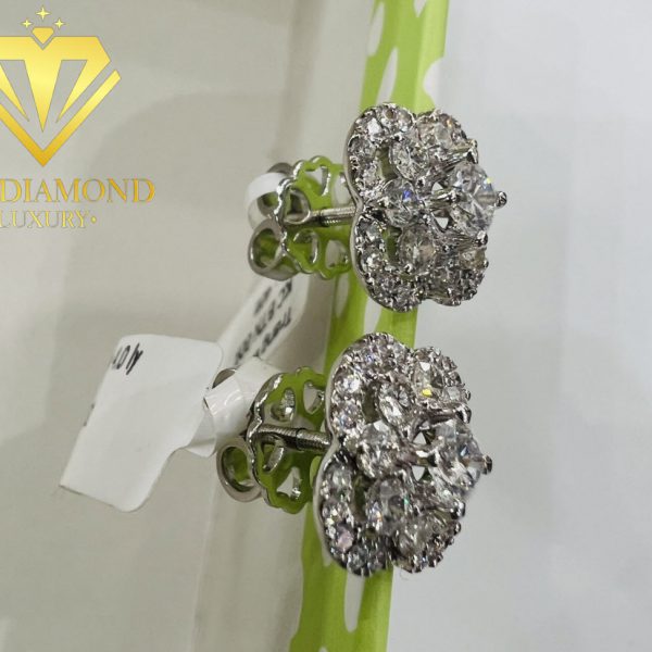 Mẫu bông tại nhập đính kim cương tự nhiên vàng trắng – Những đôi bông tai kim cương lấp lánh sẽ là món đồ phụ kiện không thể thiếu cho những bộ cánh lộng lẫy, thời thượng của các chị em phụ nữ ngày nay. Chúng không chỉ giúp tôn vinh cho nét đẹp nữ tính của các nàng, mà còn là để thể hiện được đẳng cấp sang trọng cùng sự quý phái của những người phụ nữ hiện đại.
